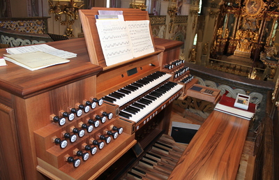 Hl. Messe - Musik. Gestaltung: Werke v. J. S. Bach, Orgel: Peter Joachim Heinrich (2. Domorganist) u. Stiftskapellmeisterin Veronika Karner, Kantorin