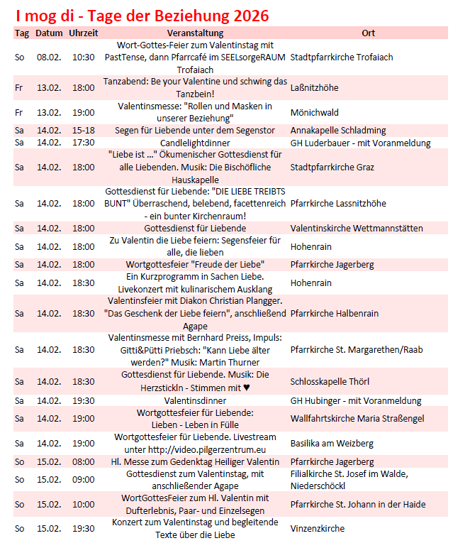 Hier wird in den steirischen Pfarren rund um den Valentinstag die Liebe gefeiert!