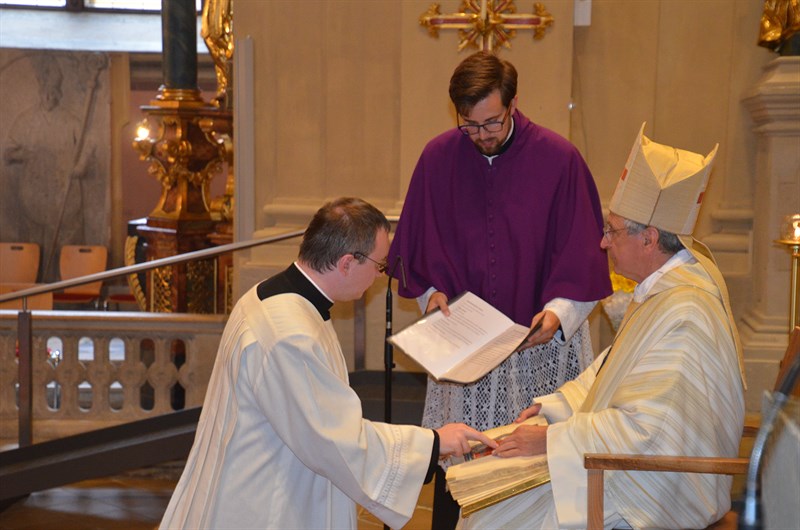 Nach den 3 Jahren der zeitlichen Profess legt der Kandidat die feierliche Profess ab und verpflichtet sich auf Lebenszeit in der Gemeinschaft des Stiftes zu bleiben.