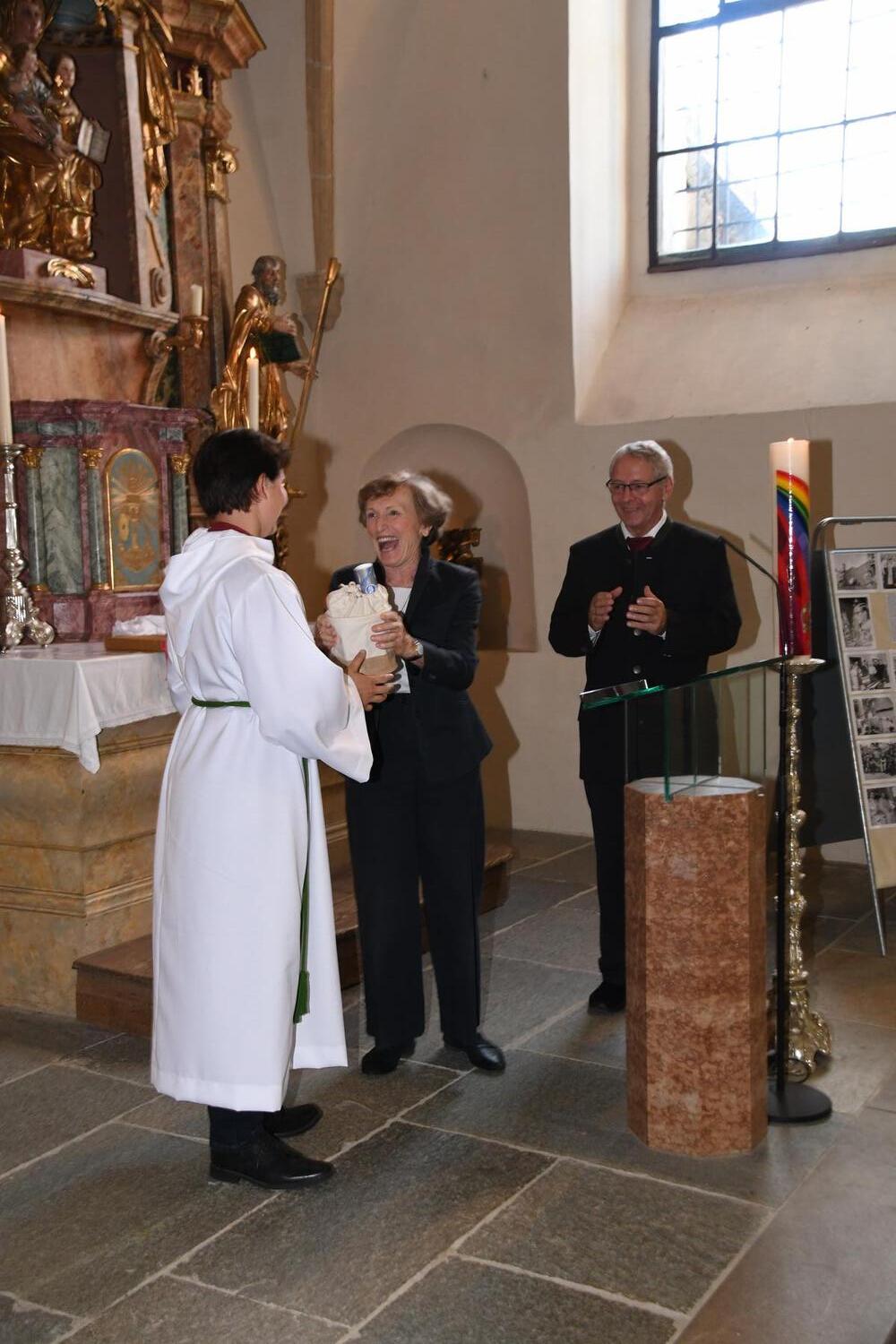 Doch neben der Berufstätigkeit engagierte sie sich im öffentlichen Leben der Marktgemeinde und vor allem in der Pfarre. Viele Jahre war sie Mitglied des Pfarrgemeinderates und in den letzten zwei Perioden sogar Vorsitzende. Gerade in diese Aufgabe investiert sie viel Herzensblut. An der Seite des Pfarrers wurde sie zur „Mutter der Pfarre“. Sie war vielfach erste Ansprechperson für unsere Pfarrgemeinderäte und viele Menschen im Ort.