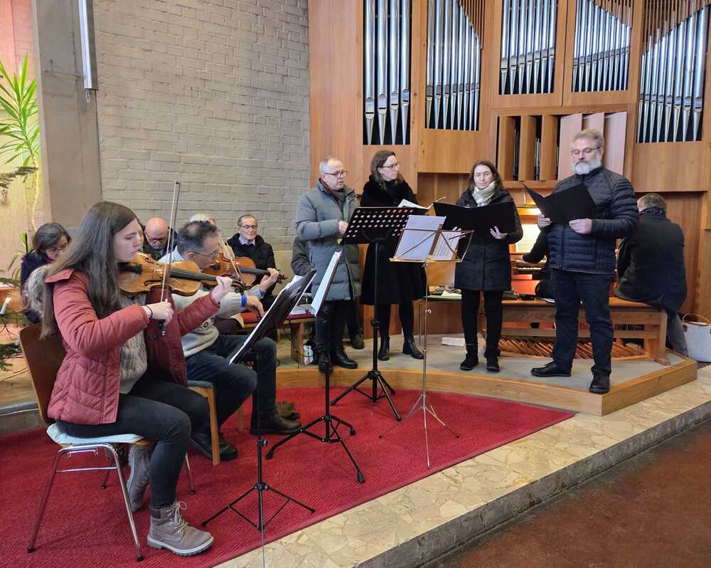 Der Kirchenchor, begleitet von Flöte, Geigen und Orgel sorgte für weihnachtliche Stimmung.